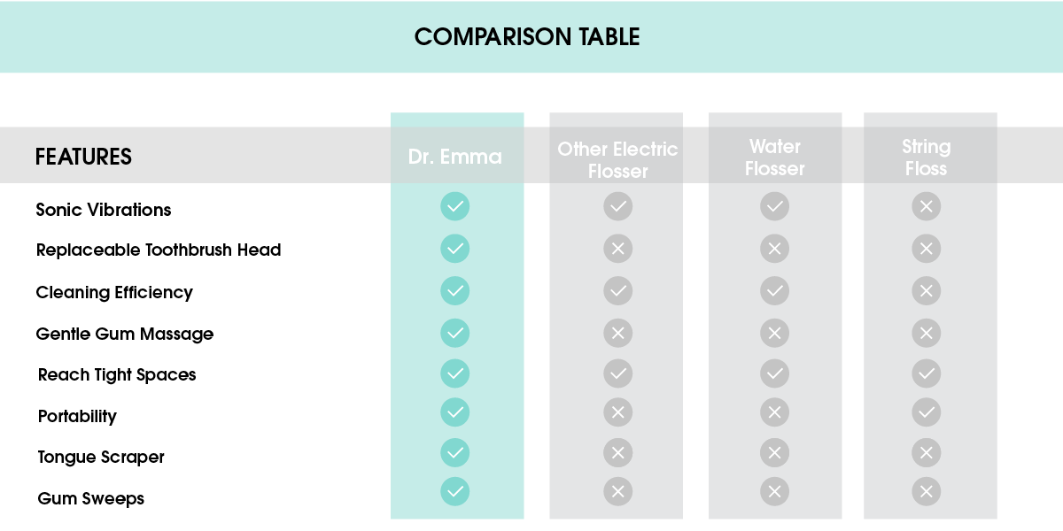 Just like how electric toothbrushes improve teeth brushing. The Dr. Emma Electric Flosser utilizes sonic vibrations to enhance the flossing experience.